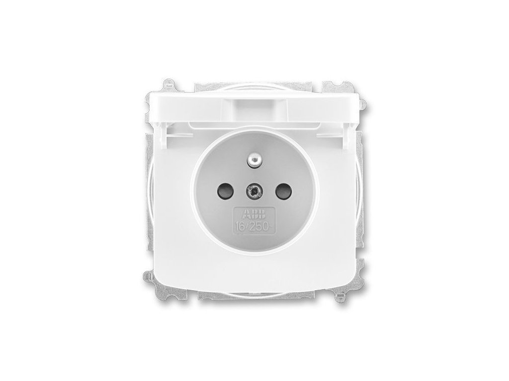 5519A-A02397 B Zásuvka jednonásobná s víčkem a clonkami, bílá, ABB