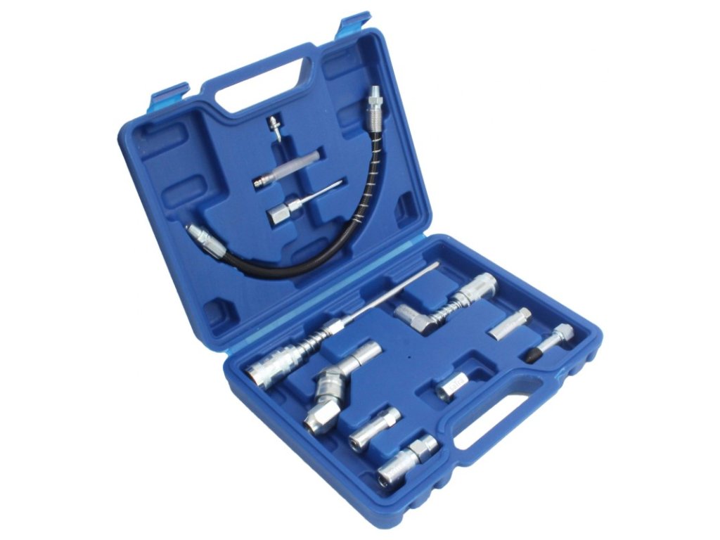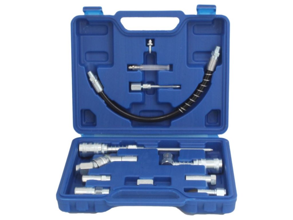 Specializovaná sada adaptérů pro ruční mazací lisy, vhodné pro údržbu vozidel, těžké techniky, stavebních strojů a dalších.