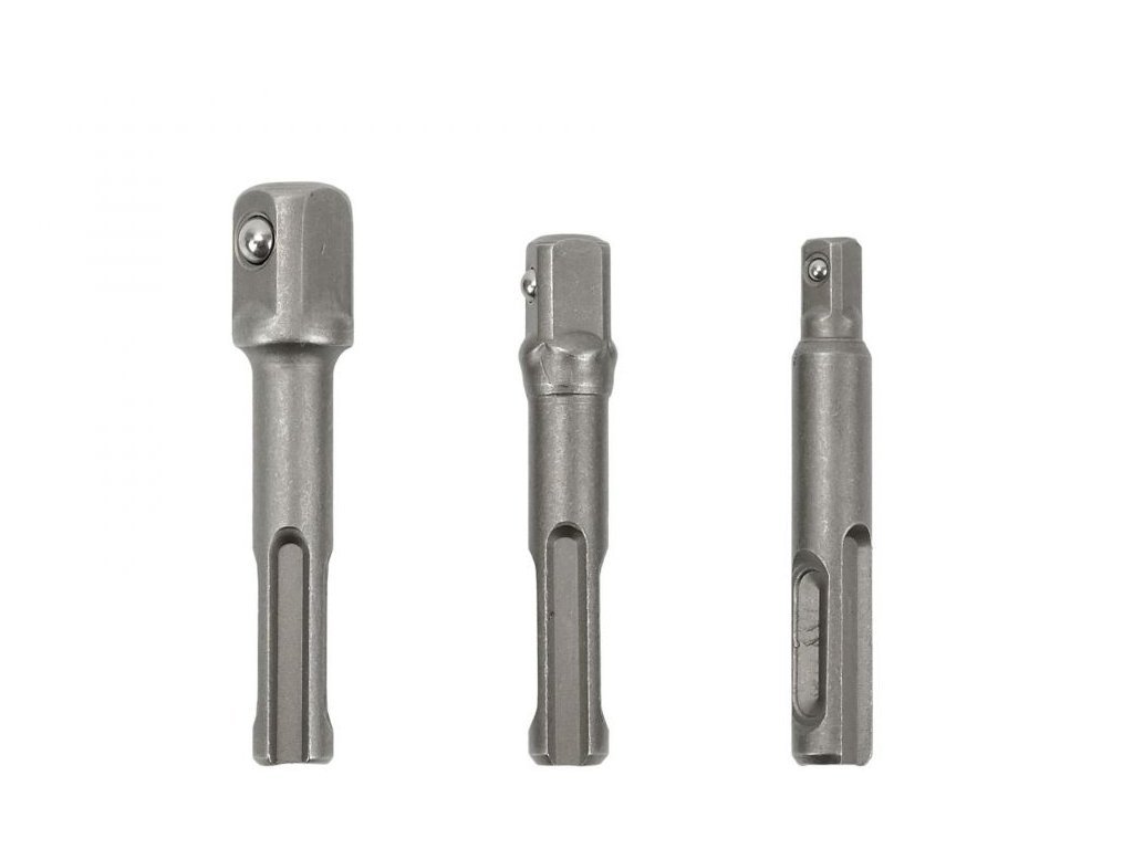 Sada 3 ks adaptérů umožňuje použití nástrčných klíčů 1/2", 3/8" a 1/4" s vrtačkou se sklíčidlem SDS-Plus. Vyrobeno z CrV oceli.