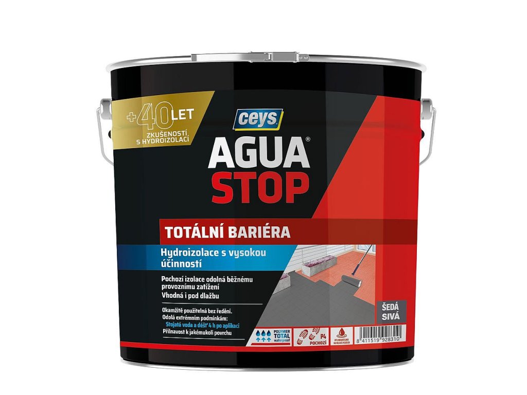 AGUA STOP TOTÁLNÍ BARIÉRA je pochozí hydroizolační membrána pro hydroizolaci.