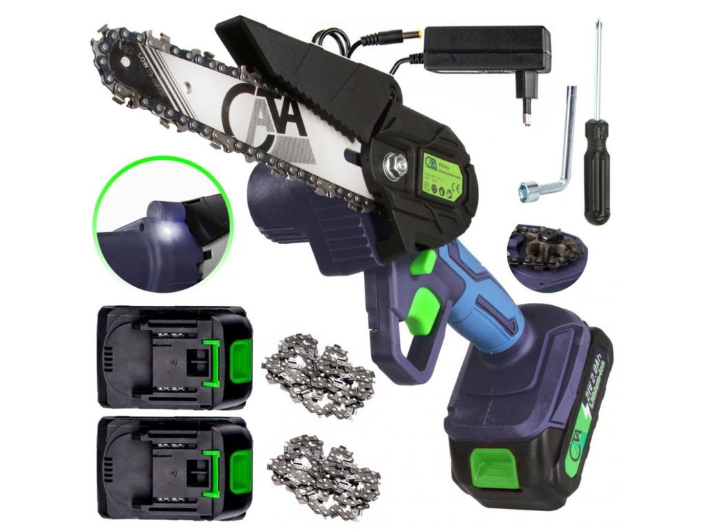 Aku jednoruční řetězová pila je vynikajícím nástrojem pro všechny, kteří potřebují efektivně a pohodlně řešit prořezávání větví stromů nebo tesařské práce. Tato pila je zvláště vhodná pro práci ve výškách díky své nízké hmotnosti a kompaktnímu designu. Je to šikovný model, který se vyznačuje výjimečnou manévrovatelností, což umožňuje snadné zvládnutí situací, kde tradiční pily selhávají kvůli svým rozměrům.
