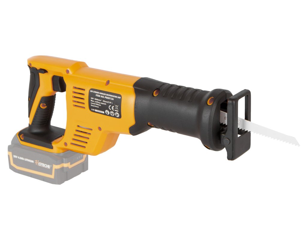 AKUmulátorová pila ocaska od značky Hoteche napájena akumulátorem 20 V.