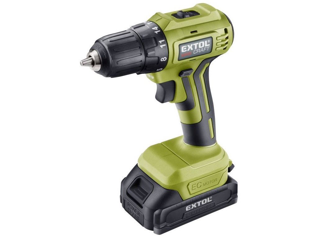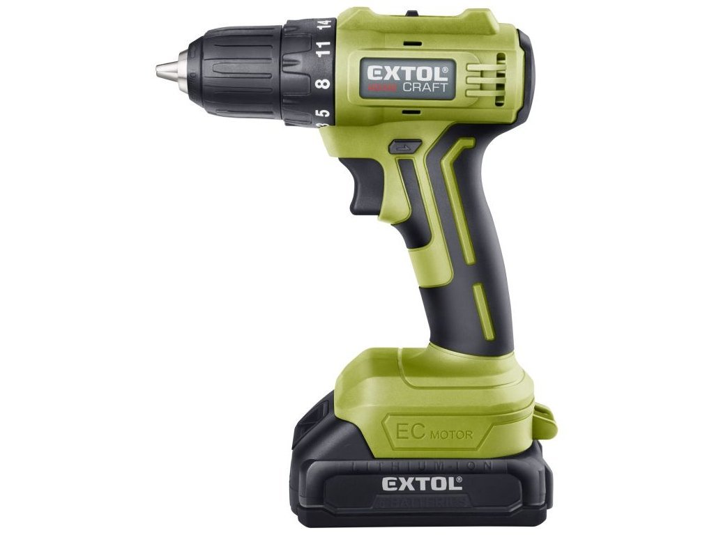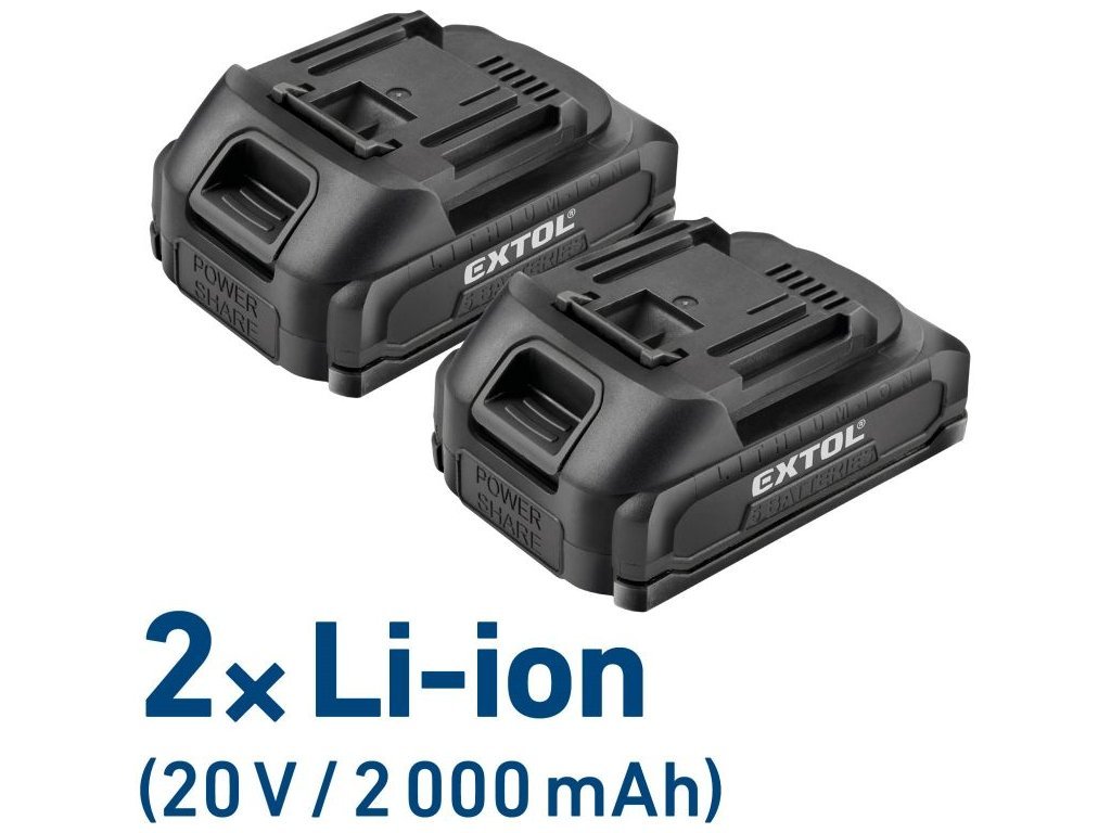 Aku vrtací šroubovák BRUSHLESS, 20 V Li-ion, 2×2 Ah EXTOL CRAFT