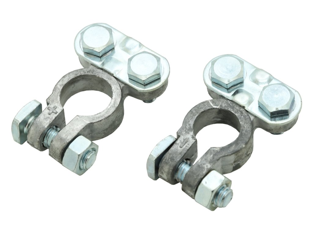 Sada dvou svorek pro připojení akumulátoru automobilu, materiál olovo.