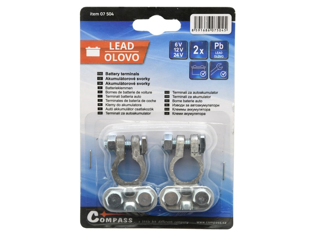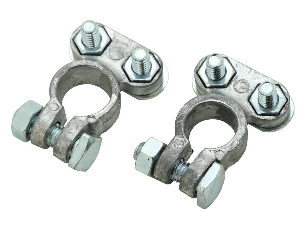 Sada dvou svorek pro připojení akumulátoru automobilu, materiál olovo.