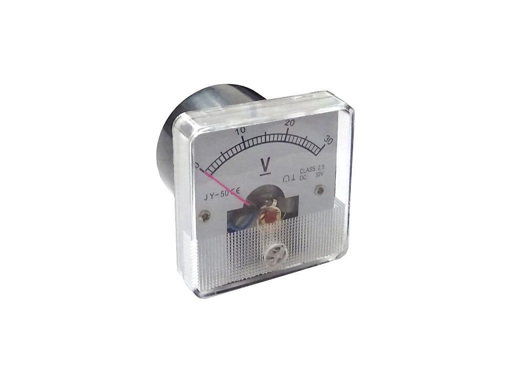 Analogový panelový voltmetr JY-50 30V= 50x50mm montážní otvor 43mmDoplňkové parametry