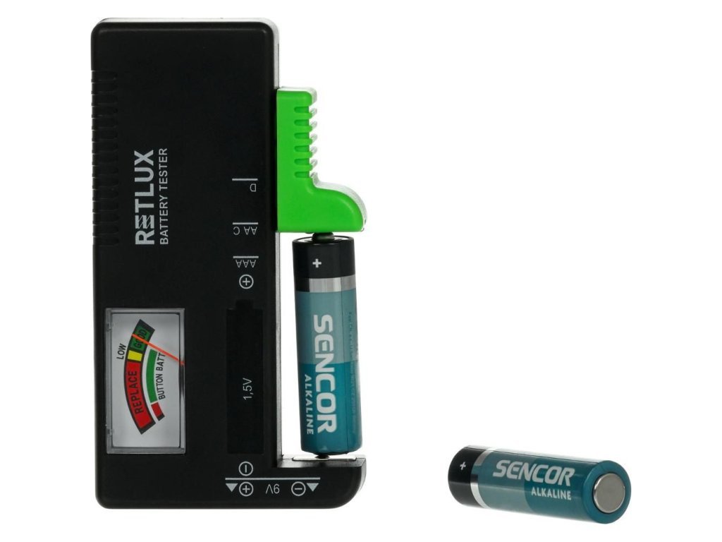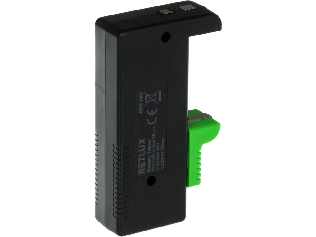 Analogový tester baterií RDM 1002 je praktický nástroj pro měření kapacity různých typů baterií a akumulátorů, včetně AA, AAA, 9 V, C, D a knoflíkových baterií 1,5 V a 9 V. Tento tester je vybaven analogovým ukazatelem, který přehledně zobrazuje tři stupně kapacity nabití. Využívá vestavěný rezistor pro přesné měření a nevyžaduje interní baterii pro svou činnost. Díky kompaktním rozměrům (113 × 30 × 64 mm) a nízké hmotnosti (60 g) je snadno přenosný a vhodný pro použití jak doma, tak v profesionálním prostředí. Stačí vložit baterii do testeru a nastavit posuvný kontakt na její velikost a zkontolovat na ukazateli stav nabití.