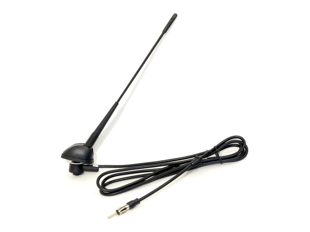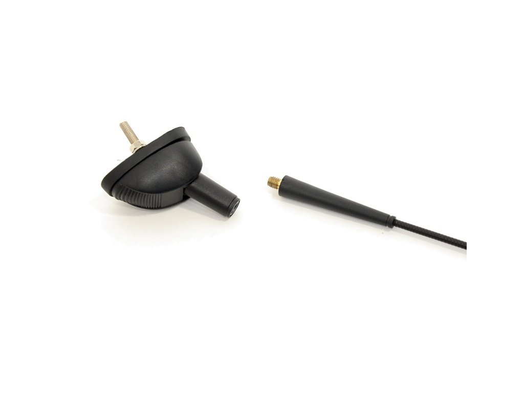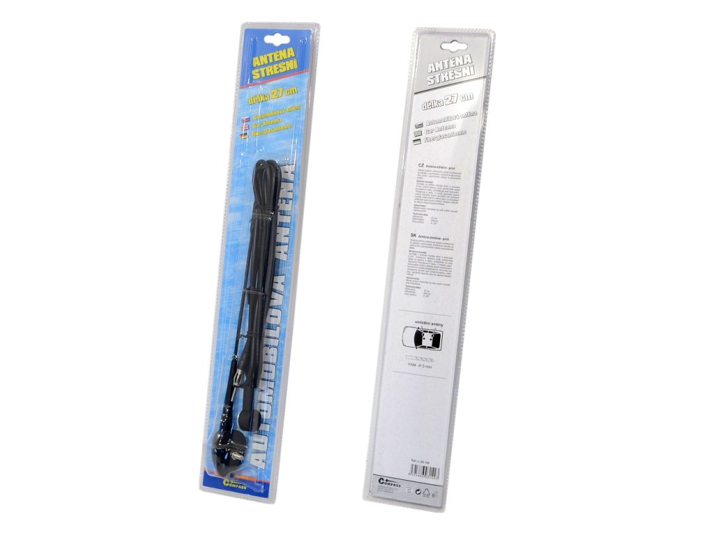 Střešní anténa určená pro příjem rozhlasového signálu v automobilu, složená ze šroubovacího prutu, upevňovací patice a přívodního kabelu. Délka prutu 27 cm, délka kabelu 200 cm, sklon antény: 0 - 25°.