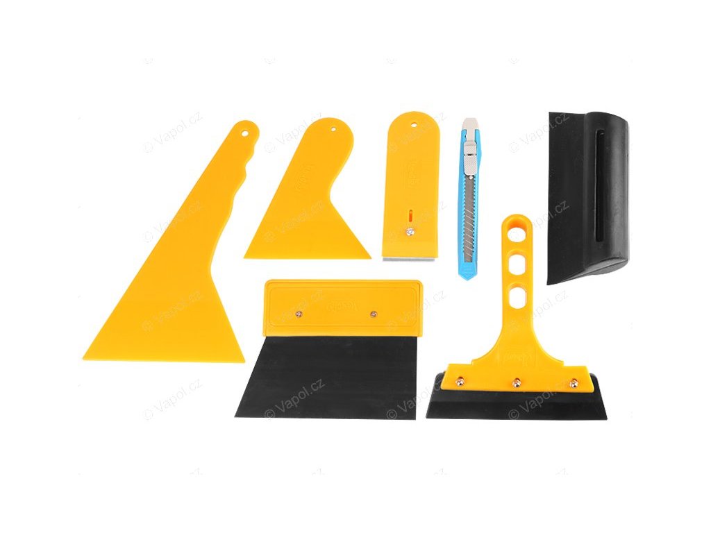 Sada obsahuje: stěrku s čepelí, nůž, gumovou stěrku (x2), plastovou stěrku (x2), kovovou stěrku.
