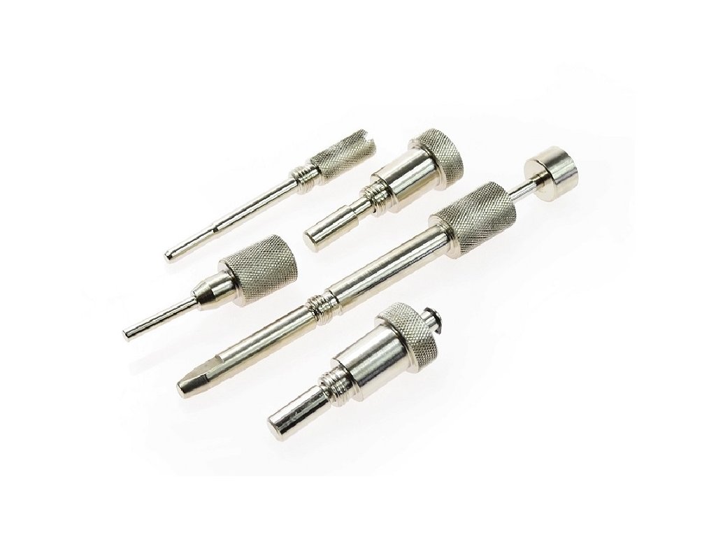 Sada rozvodového nářadí pro zablokování vznětového motoru Fiat, Iveco 2,3L JTD (poháněný řemenem), 3,0L JTD (poháněný řetězem) a Citroen, Peugeot 3,0L Hdi (poháněný řetězem). Sada obsahuje seřizovací kolíky vačkového hřídele, pojistný kolík klikového hřídele potřebný pro motory vyrobené v letech 2006-2008 a pojistný kolík snímače. Vysokotlaké čerpadlo nevyžaduje blokování.