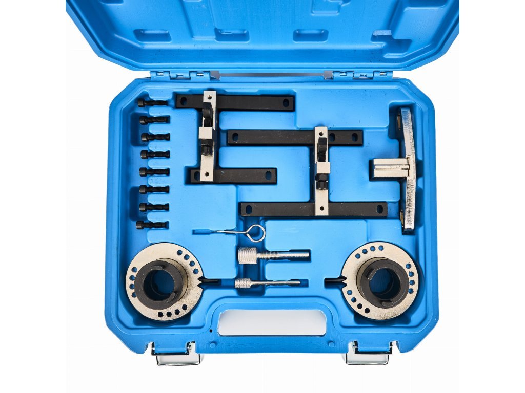 Tato sada aretačních přípravků pro rozvody motoru je vhodná zejména pro specializované autoservisy, ale i pro zručné automobilové nadšence, kteří si cení kvality a preciznosti. Zámky efektivně znehybňují rozvodové kolo, ozubené kolo klikového hřídele a napínací kladku řemene, což umožňuje bezpečnou a hladkou manipulaci bez rizika poškození citlivých součástí motoru.