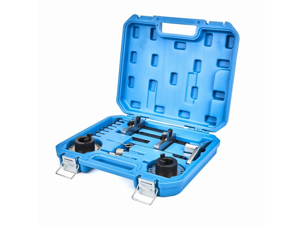 Aretační sada přináší profesionální řešení pro veškeré práce spojené s výměnou rozvodového řemene. Poskytuje maximální přesnost a spolehlivost při blokaci rozvodových kol v servisní poloze. Díky speciálnímu tvaru zámků lze snadno dosáhnout přesného nastavení časování zapalování, což je klíčové pro optimální výkon motoru.