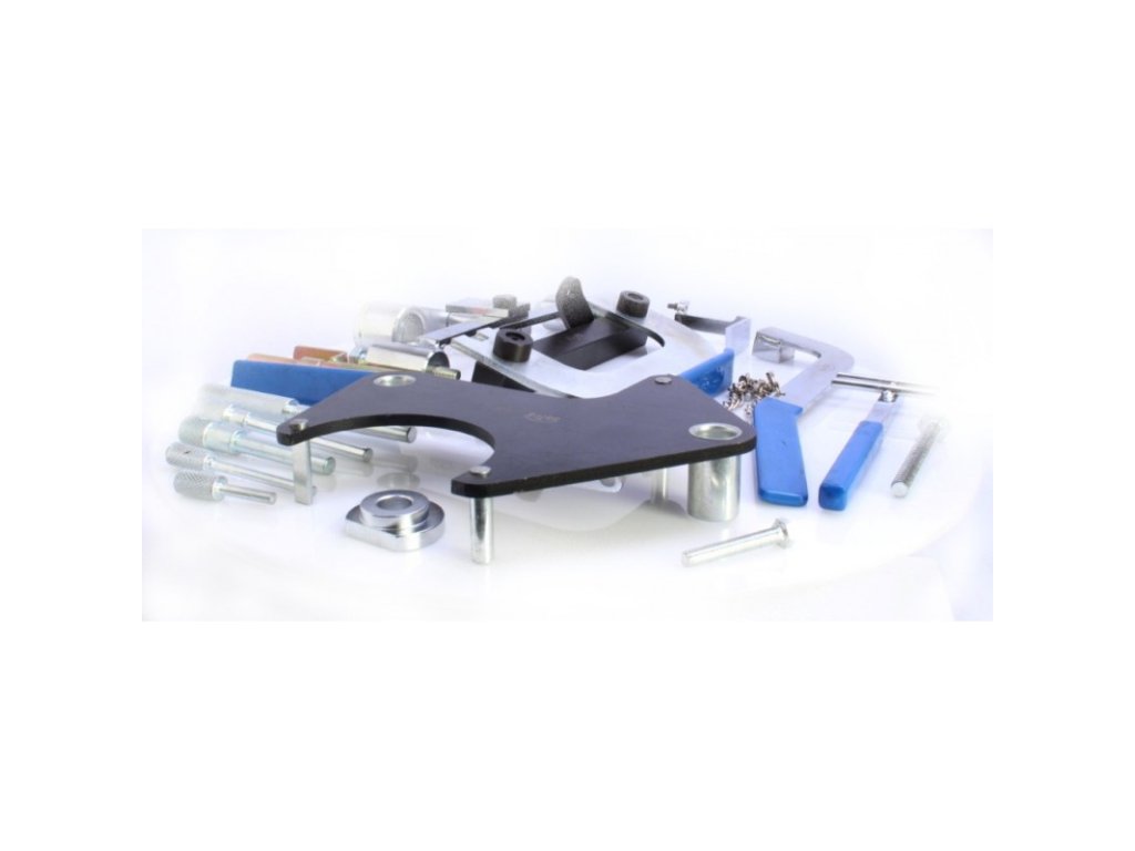 Přípravky k nastavení časování, napínání a vyrovnání klikového hřídele do požadované polohy.