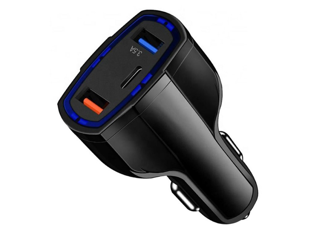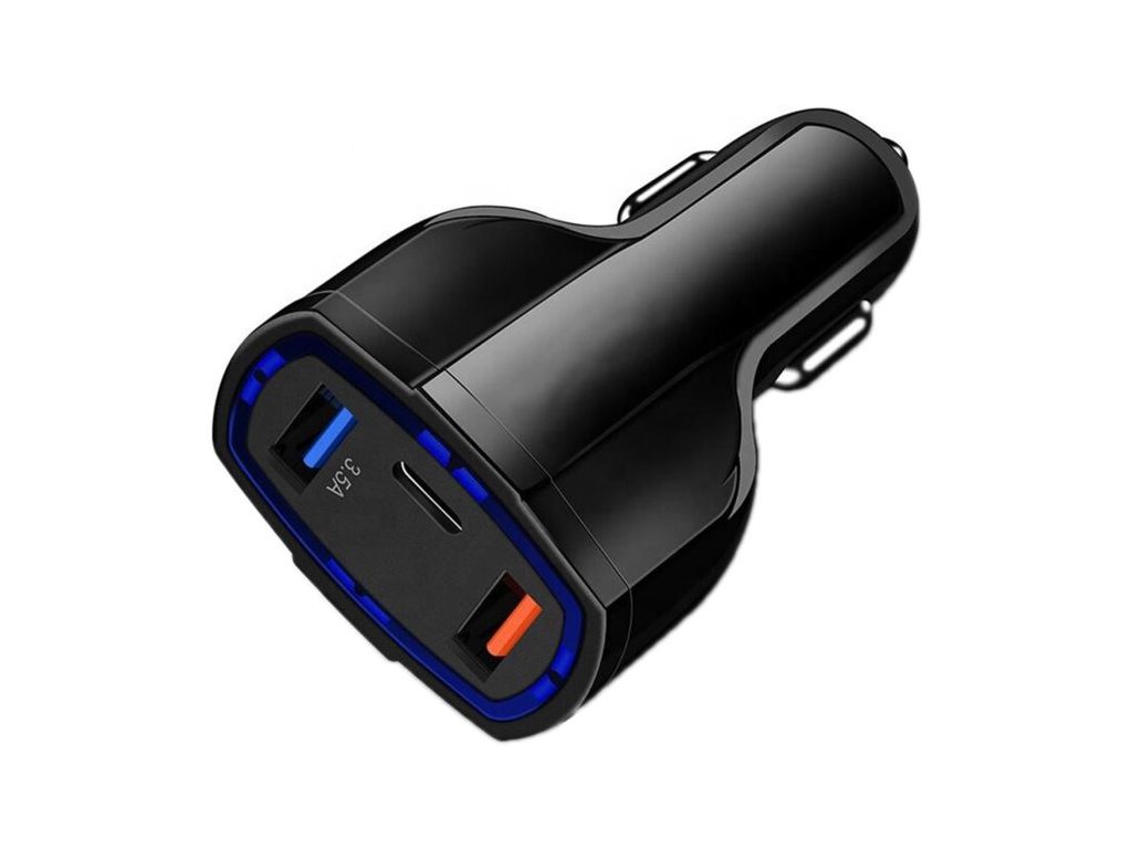 Autoadaptér do auta Quick Charge 3.0 QC3.0 2xUSB / USB Typ C černá Tento lehký a praktický doplněk podporuje technologií Quick Charge a bleskurychle obnoví energií Vašeho zařízení. Navíc je vybavený LED diodou, která usnadňuje lokalizaci nabíječky v noci. S tímto doplňkem nabijete až 3 zažízení zároveň. Kompatibilní s 99,5% modely aut.Specifikace: