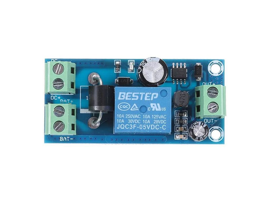 Modul YX850 automaticky přepne zdroj napájení při výpadku energie. Za normálních okolností je spotřebič napájen ze síťového zdroje zapojeného na svorky DC+ a DC-. V případě výpadku napájení modul přepne napájení spotřebiče za svorek BAT+ a BAT-. Baterii lze nabíjet ze síťového zdroje.**Specifikace:**