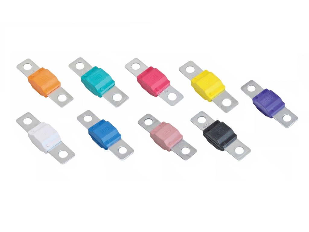 Typ autopojistek používaný v obvodech s vysokými průtoky proudu. Pouzdro z plastu zabraňuje vzniku jiskry při sepnutí pojistek. Do okruhů se upevňují pomocí dvou šroubků.