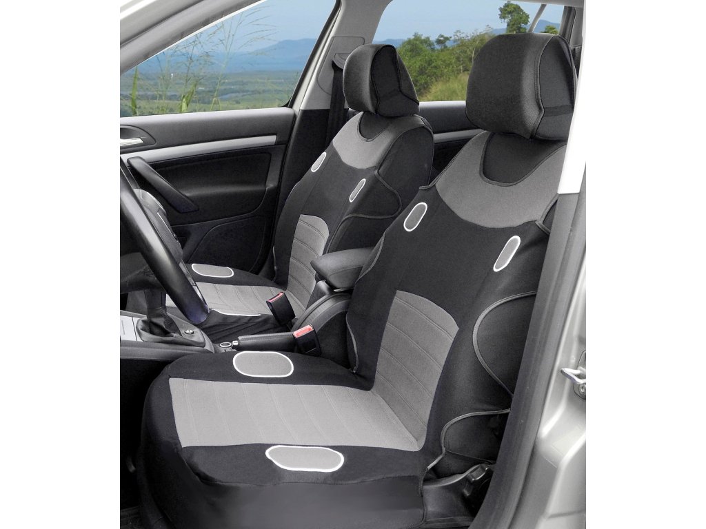 Potahy sedadel s univerzálním systémem upevnění, sada na přední sedadla (2x přední díl s opěrkami hlavy).