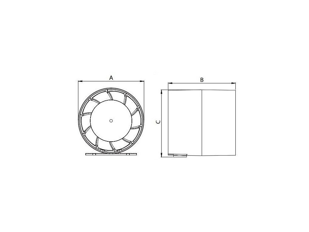 Axiální potrubní ventilátor vhodný pro potrubí se světlostí 100 mm.