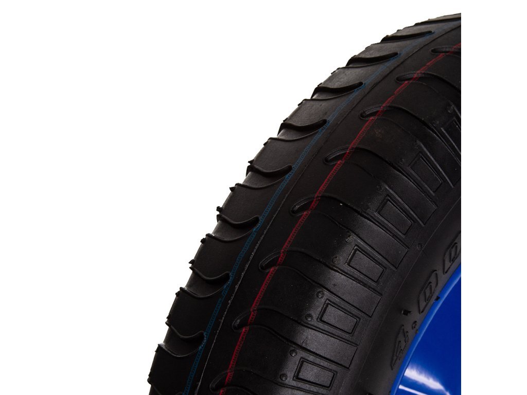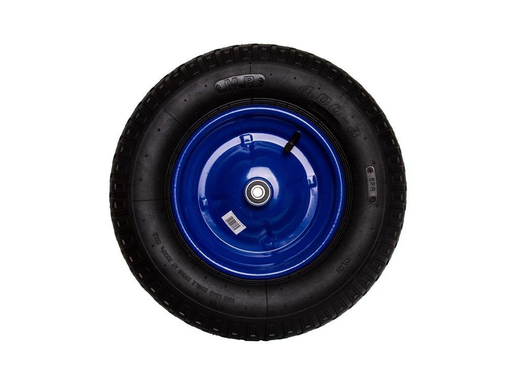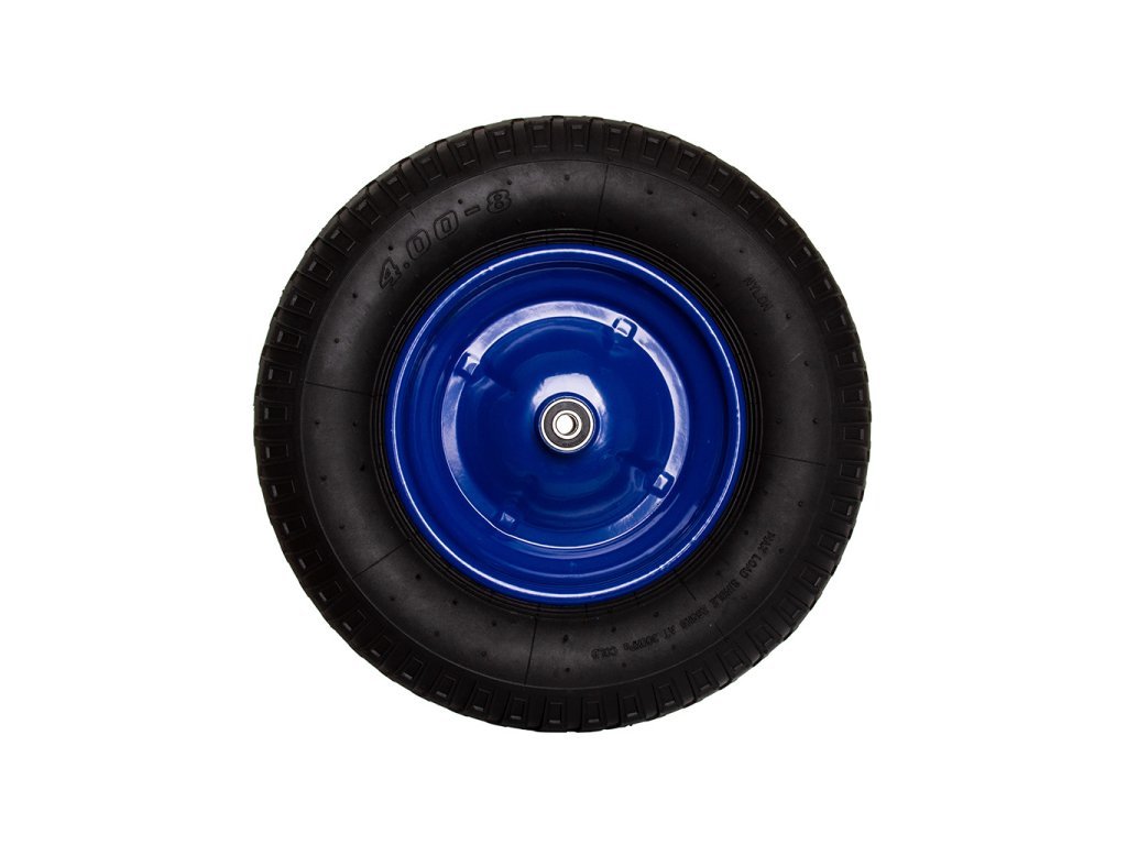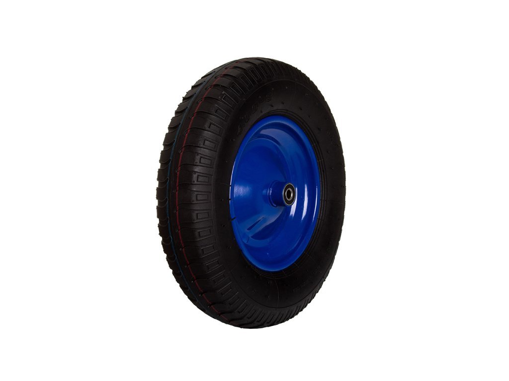 Kvalitní nafukovací bantamové kolečko s kuličkovými ložisky pro univerzální použití na náročných površích. Pneumatika s velkou nosností, dlouhou životností a odolností na modrém ocelovém ráfku.