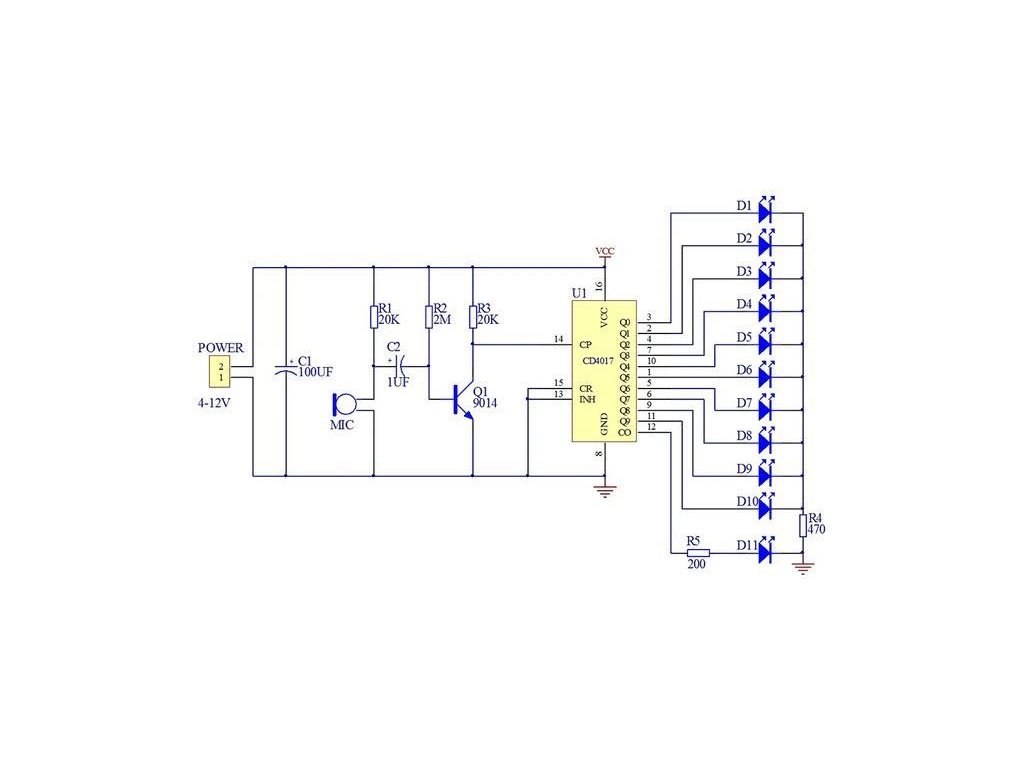 Barevná hudba mini LED STAVEBNICE Světlo tvořené deseti modrými LED, které se postupně rozsvěcují, svítí vždy jen jedna, video funkce viz zdeManuál k produktu je ke stažení zde
