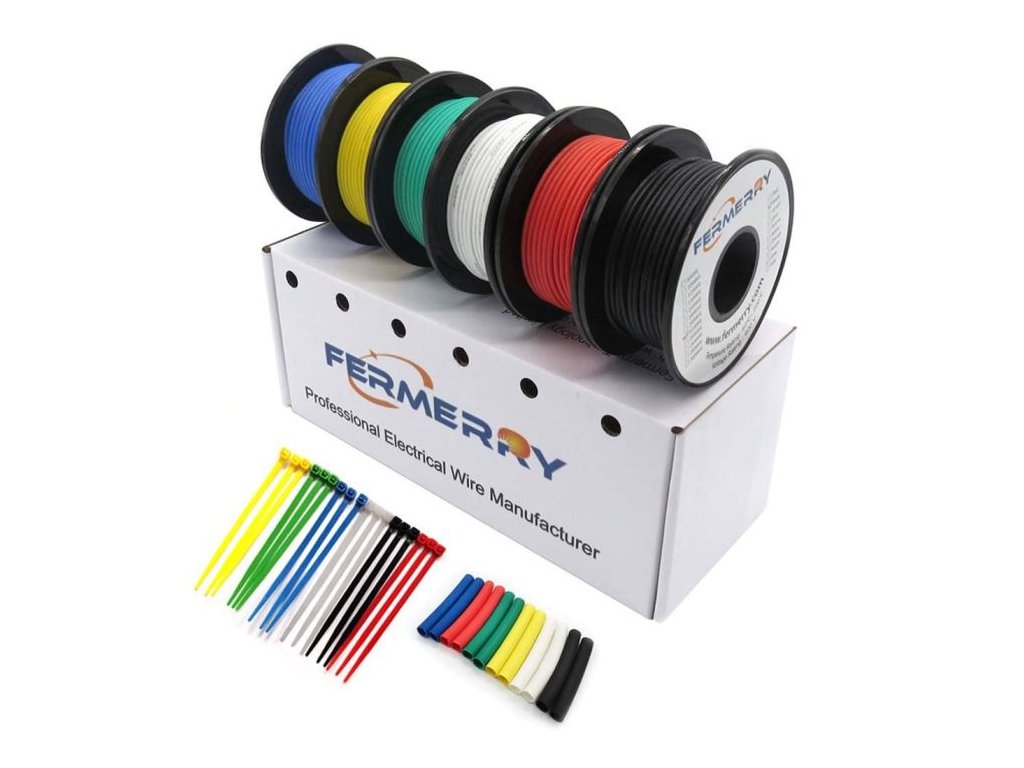 Barevná sada - vodič - lanko 0,5mm2 Cu+Sn, 6 barev, balení 6x8m Sada pocínovaných měděných vodičů (lanka) se silikonovou izolací.6 barev - bílá, žlutá, červená, zelená, modrá, černá