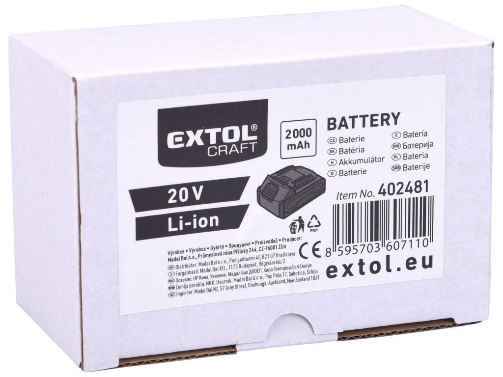Baterie akumulátorová, Li-ion, 20 V, 2 Ah - EXTOL ENERGY