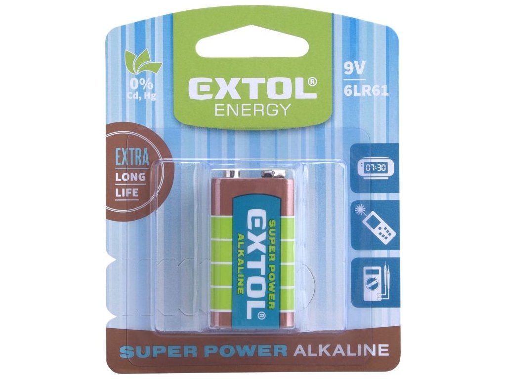 Baterie alkalické, 1ks, 9V (6LR61) EXTOL ENERGY