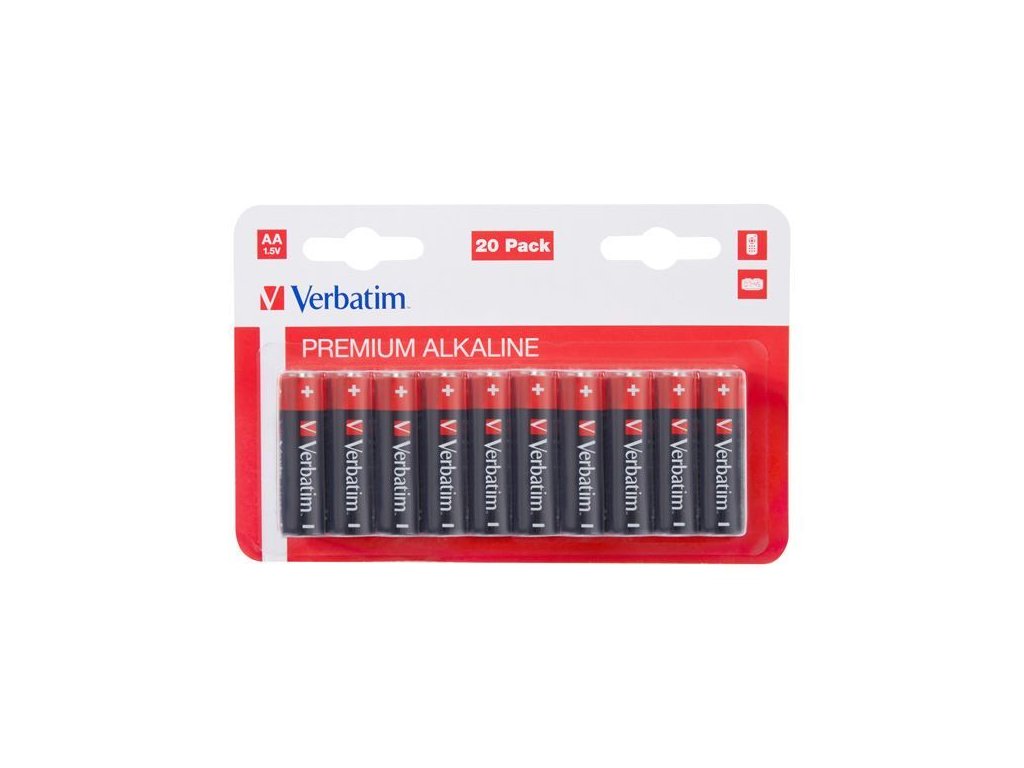 Baterie Verbatim 1,5V AA (LR06) alkalická, balení 20ks Alkalické baterie AANapětí: 1,5V