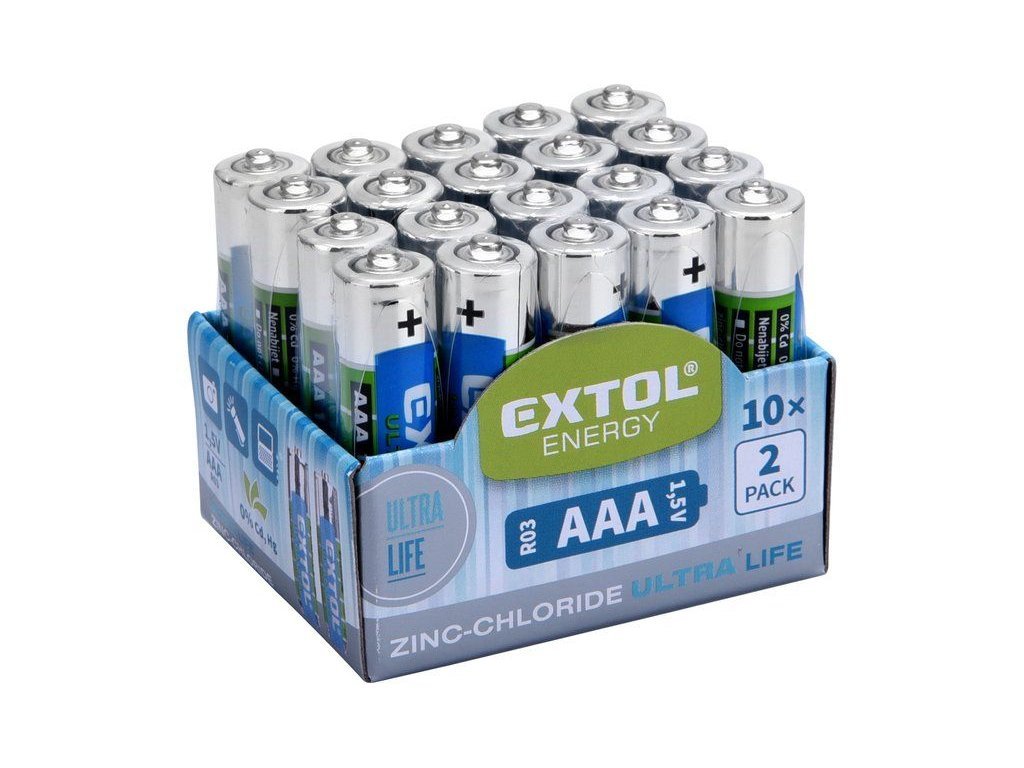 Baterie zink-chloridové, 20ks, 1,5V AAA (R03) EXTOL ENERGY