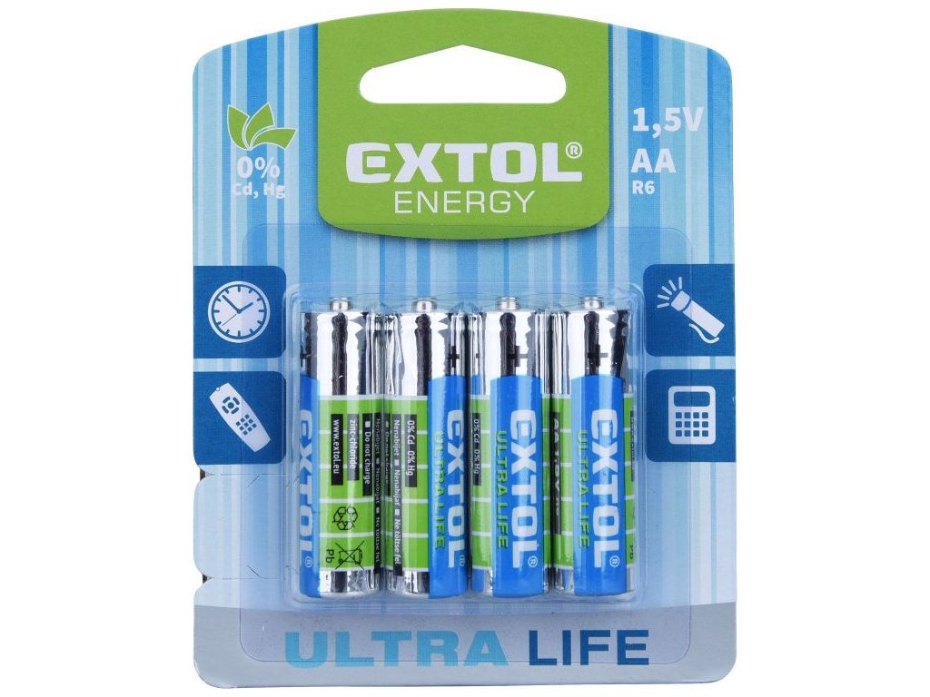 Baterie zinko-chloridové, 4ks, 1,5V AA (LR6), EXTOL ENERGY