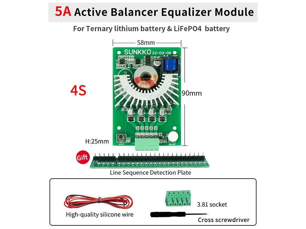 Bateriový balancér SUNKKO BAL-504 4S 5A pro Li-Ion a LiFePO4 články SUNKKO BAL-504 5A je špičkový bateriový balancér pro litiové články Li-Ion nebo LiFePO4 s kapacitou nad 20Ah. Je osazen toroidním transformátorem a polovodiči MOS.**Specifikace:**
