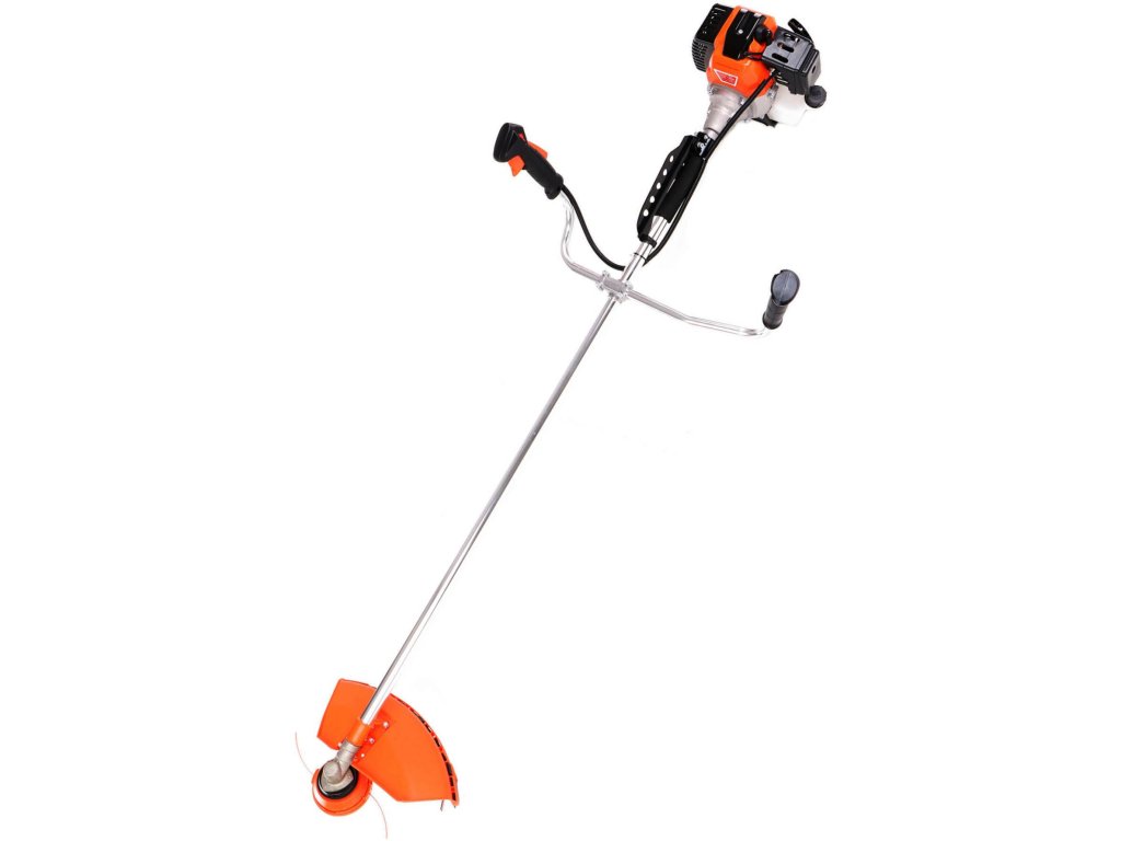 Hlavní výhodou nástroje je jeho bohaté příslušenství, zejména náhradní strunové hlavy, robustní vyžínací nůž, kotouč na dřeviny a dvouramenný popruh, díky kterému budete s kosou snadno manipulovat a ochranný štít, který vás ochrání před poraněním obličeje.