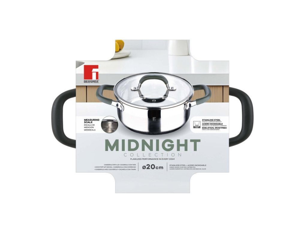 BERGNER Kastrol s poklicí nerez MIDNIGHT 20 cm 2,3 litru BG-32126-MM