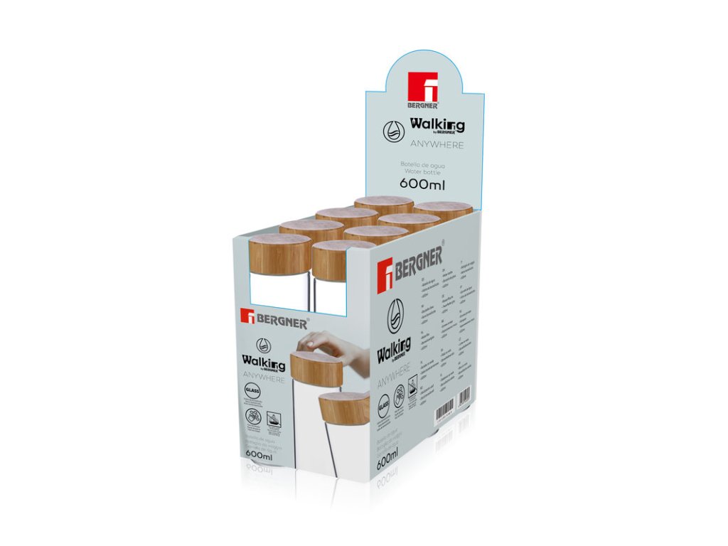 BERGNER Lahev skleněná přenosná s bambusovým víkem 600 ml BG-20136-MM