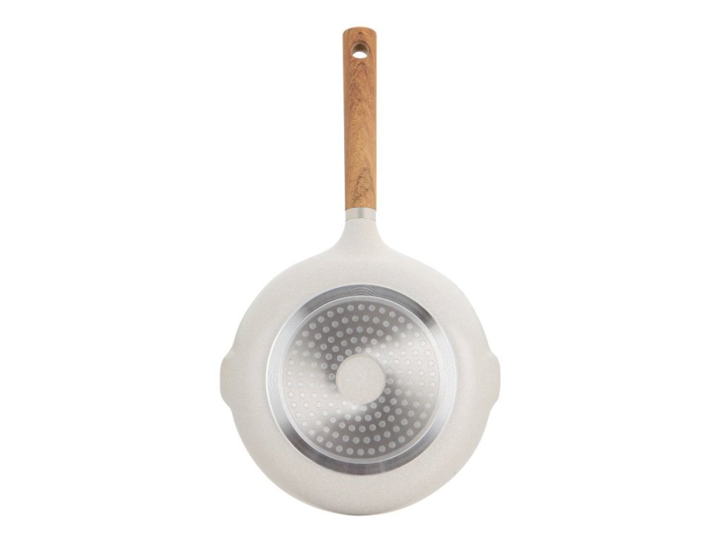 • Pánev 24 cm. • Vyrobeno z litého hliníku pro skvělé udržení tepla. • Krémové provedení se zlatými a bílými puntíky. • Dot indukční základna, vhodná pro všechny varné desky. • Ergonomická dřevěná rukojeť s měkkým dotykem.• Snadné čištění. Přirozeně vám přináší pánev o průměru 24 cm, která optimálně udržuje teplo pro pomalé a šetrné vaření jídla díky vysoce kvalitnímu litému hliníku, ze kterého je vyrobena. Praktická pánev se dvěma nalévacími hubicemi po stranách pro nalévání krémů nebo tekutin bez rozlití. Manipulujte s ním bezpečně díky ergonomické dřevěné rukojeti měkké na dotek pro dokonalé uchopení. Užijte si kolekci navrženou s tečkovanou indukční základnou vhodnou pro všechny varné desky na trhu a její krémová barva s jemnými zlatými a bílými tečkami, která dodá vaší kuchyni teplý vzduch. Snadno se čistí, pro prodloužení životnosti výrobku se doporučuje ruční mytí.Doplňkové parametry