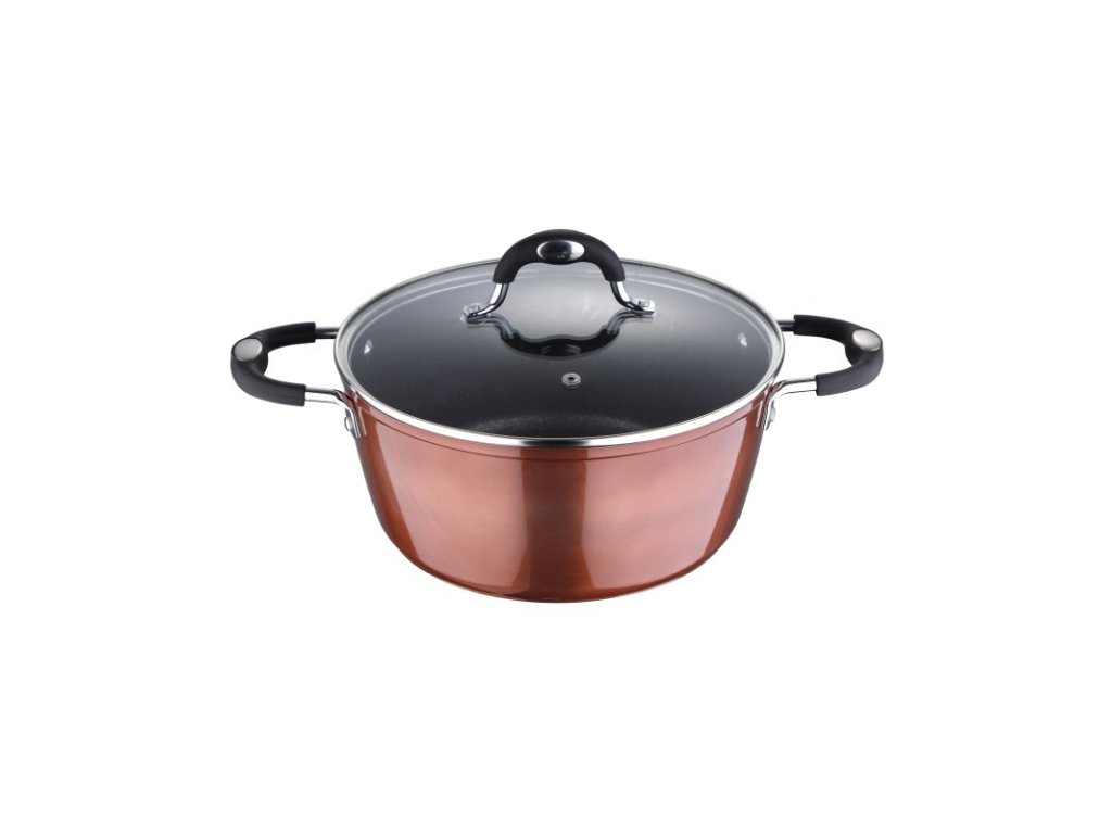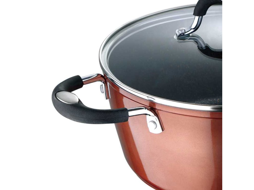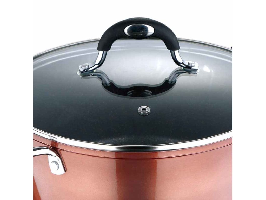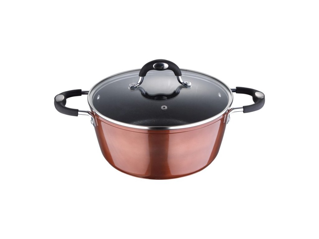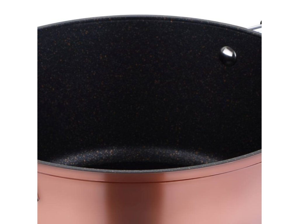 • Výrobek z kovaného hliníku. Každý kus tohoto nádobí má strukturu vyrobenou z nejlepšího kovaného hliníku pro větší životnost a odolnost proti nárazům. • Hrnce pro indukční systém. Nádobí v sadě funguje efektivně s různými styly vaření. Jsou ideální pro použití v kuchyních s indukčními systémy. • Všestranná sada hrnců. Jsou to hrnce, které lze v kuchyni využít pro širokou škálu použití a snadno vařit, vařit, smažit a opékat jakoukoli přísadu.•Různé nádobí. Sada obsahuje pánev ideální pro smažení jakékoli suroviny bez použití velkého množství oleje a 2 pánve s poklicí pro bezpečné vaření.•Z kolekce Bergner Pandora. Kuchyňské baterie obsažené v této sadě se vyznačují kvalitou této řady výrobků, díky čemuž si jejich používání můžete užívat po mnoho let.Kvalitní sada pánve a kastrůlku s poklicí od značky Bergner Pandora. Je to velmi užitečná sada kusů do kuchyně. Obsahuje hrnce různých velikostí a pro různé použití v kuchyni. Sada navíc obsahuje pevnou a odolnou pánev s nepřilnavým povrchem. Jedná se o sérii kuchyňských doplňků, které usnadní různé úkoly při vytváření různých receptů. Můžete vařit, vařit, smažit nebo opékat různé přísady. Tato sada hrnců bude ideální pro usnadnění různých úkolů v kuchyni. Jsou to kusy vyrobené z produktů optimální kvality, aby si je užívali po mnoho let. Jsou to hrnce, které se snadno udržují a umývají. Dílky této sady nádobí mají složení, které je činí trvanlivými a odolnými. Struktura každého z herních prvků je vyrobena z kovaného hliníku, materiálu, který odolává nárazům a poškrábání, aniž by byla ovlivněna jeho struktura. Nádobí odolává nejvyšším teplotám, takže jeho estetika a funkčnost nebude ovlivněna teplem. Vnitřek každého kusu hry má mramorový povlak, jehož kvalita zabraňuje vzniku škrábanců na jeho povrchu. Navíc mají nepřilnavou vrstvu, která zabraňuje přichycení jídla k povrchu hrnců. Jeho měděný povrch poskytuje těmto hrncům elegantní a jednoduchý design, takže se přizpůsobí prostorům různých kuchyňských stylů. Sada obsahuje 5 kusů pro více použití. Součástí je pánev o rozměrech 24 x 4,7 centimetru, ideální pro smažení a opékání různých surovin bez použití velkého množství oleje. 2 hrnce se skleněnými poklicemi různých velikostí, vhodné pro vaření polévek a dalších receptů uvnitř bezpečným a pohodlným způsobem. Jsou to ideální kuchyňské baterie pro použití doma nebo v profesionálních restauracích. S použitím těchto kousků si budou moci nadšenci do jídla vychutnat jedinečný zážitek při vytváření svých oblíbených receptů.Doplňkové parametry