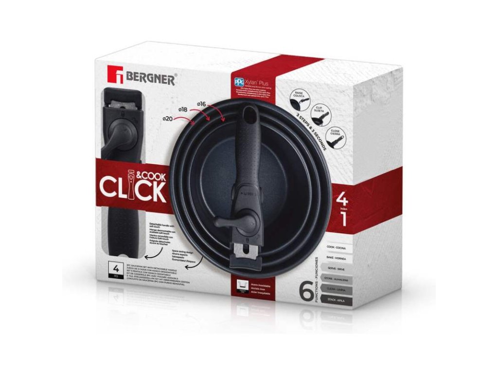 Bergner Sada pánví nerez s nepřilnavým povrchem Click&Cook 3 ks 16, 18, 20 cm BG-32293-MM