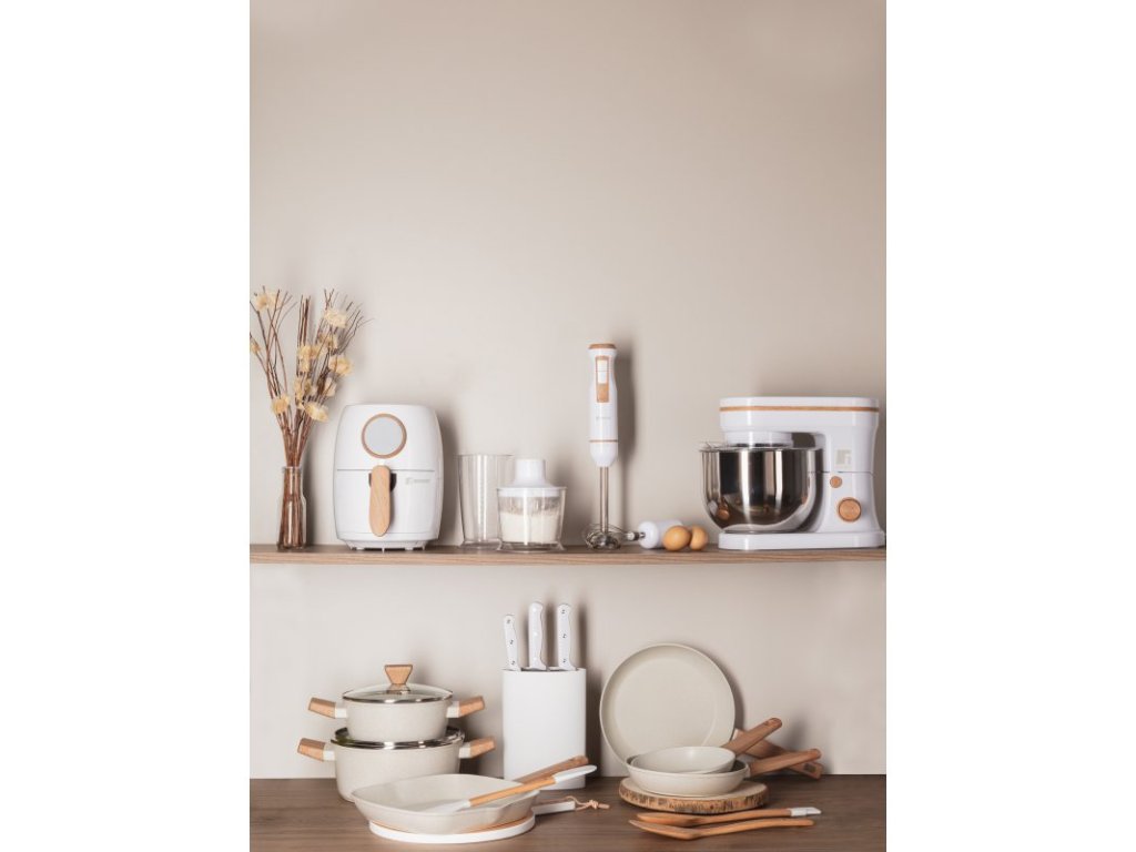 Elegantní a funkční set dvou mlýnků, který v sobě spojuje přírodní krásu dřeva s moderním designem. Horní část z kvalitního bukového dřeva dodává každému kusu teplý přírodní charakter, zatímco spodní část z pogumovaného dřeva je ošetřena matným bílým lakem, což celku propůjčuje moderní a svěží vzhled.