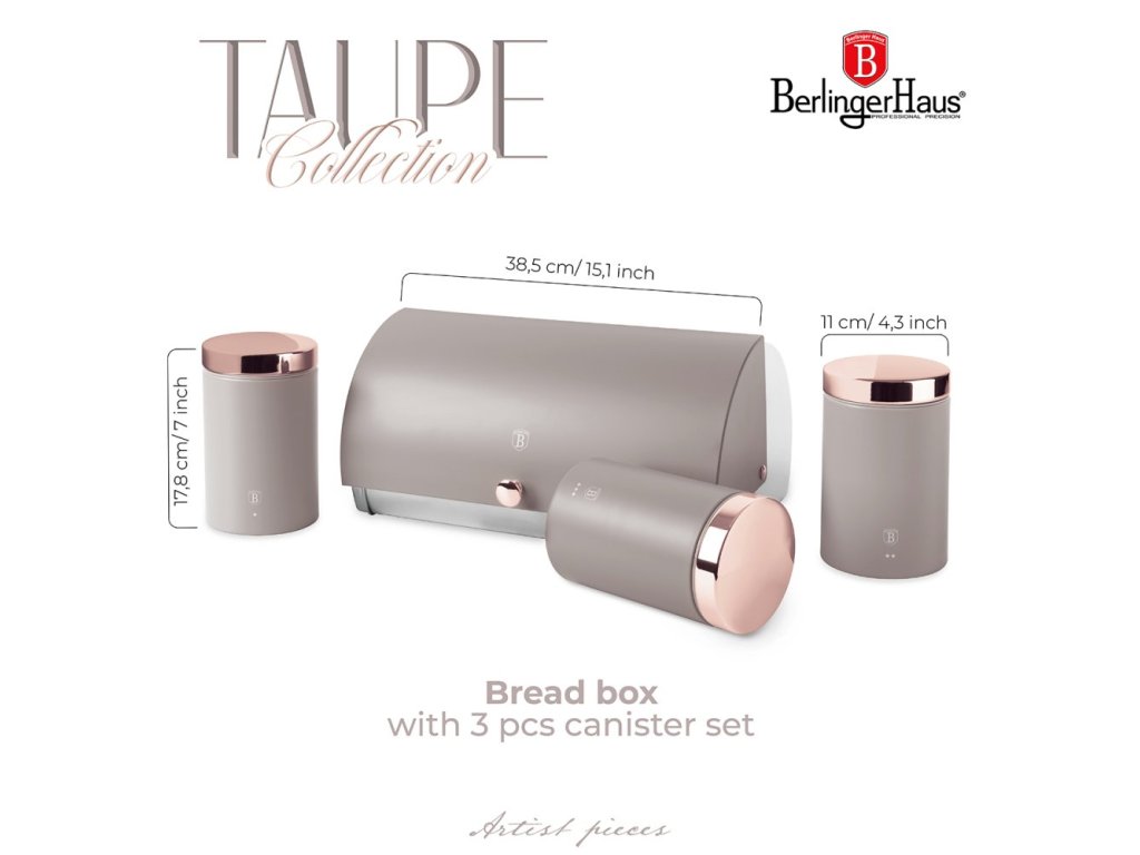 BERLINGERHAUS Chlebník a sada dóz na potraviny 4 ks Taupe Collection BH-6834