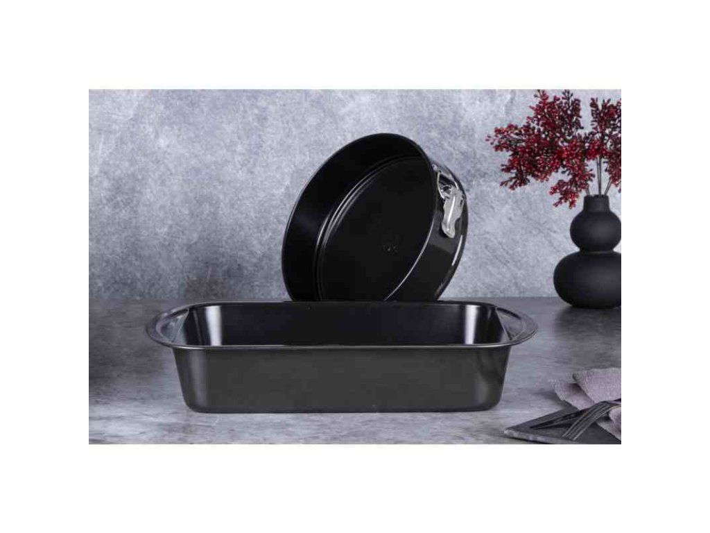 - Materiál: uhlíková ocel s titanovým nepřilnavým povrchem- Součástí balení je:- Podlouhlý pekáč 40*28,5*7 cm- Kulatá pružinová forma 24*6,8 cm- Barva: černá metalíza - titanová černá nepřilnavá vrstva- Vyrobeno z těžké oceli - Silná stěna korpusu, hloubka boční stěny 7 cm- Stylový- Speciální metalická edice- Elegantní design s metalickou vnější barvou (funkční a stylové nádobí, které vyhoví každému!).- Snadno se čistí- Šetrný k životnímu prostředíBez PFOA, LEAD, kadmiaDoplňkové parametry