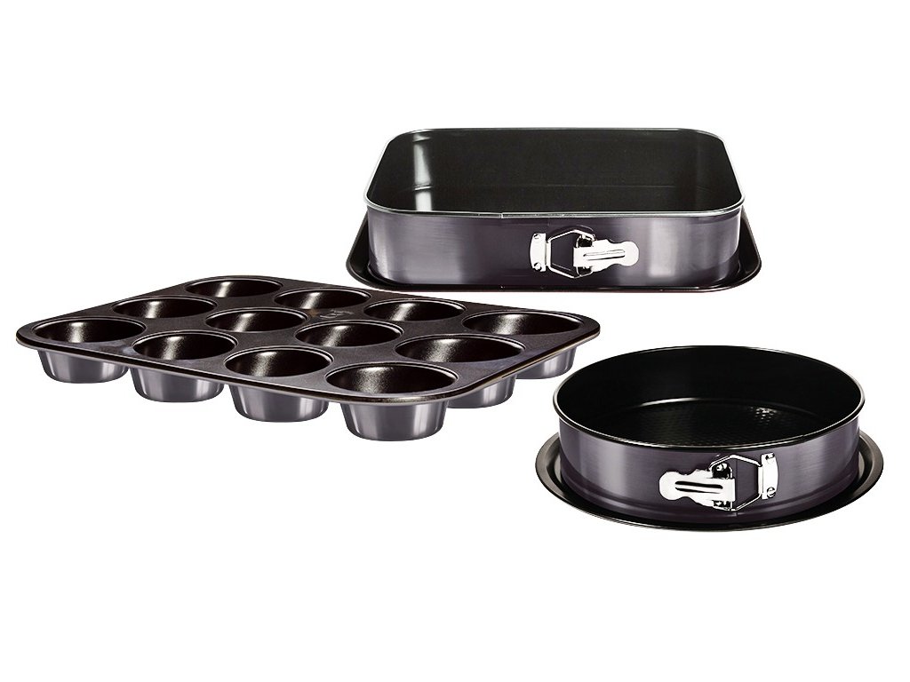 - sada pečících forem do trouby s titanovým povrchem- celkem 3 kusy různých forem na pečení včetně odnímatelných táců