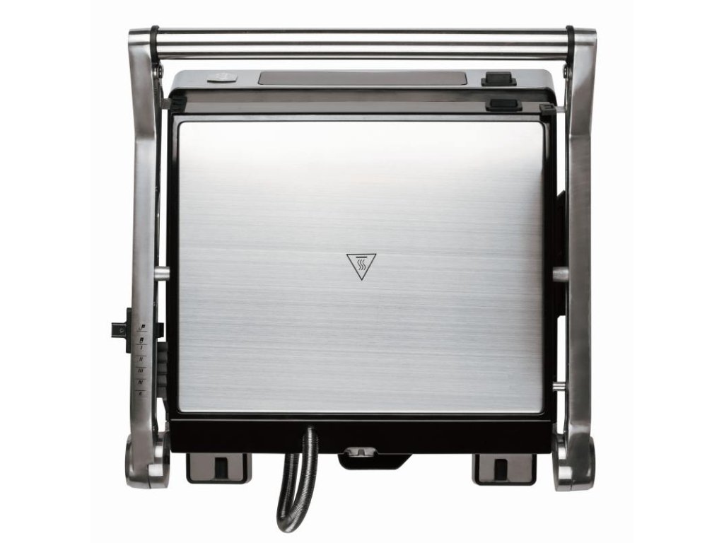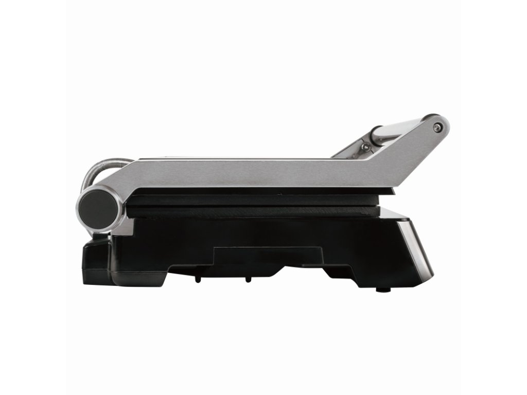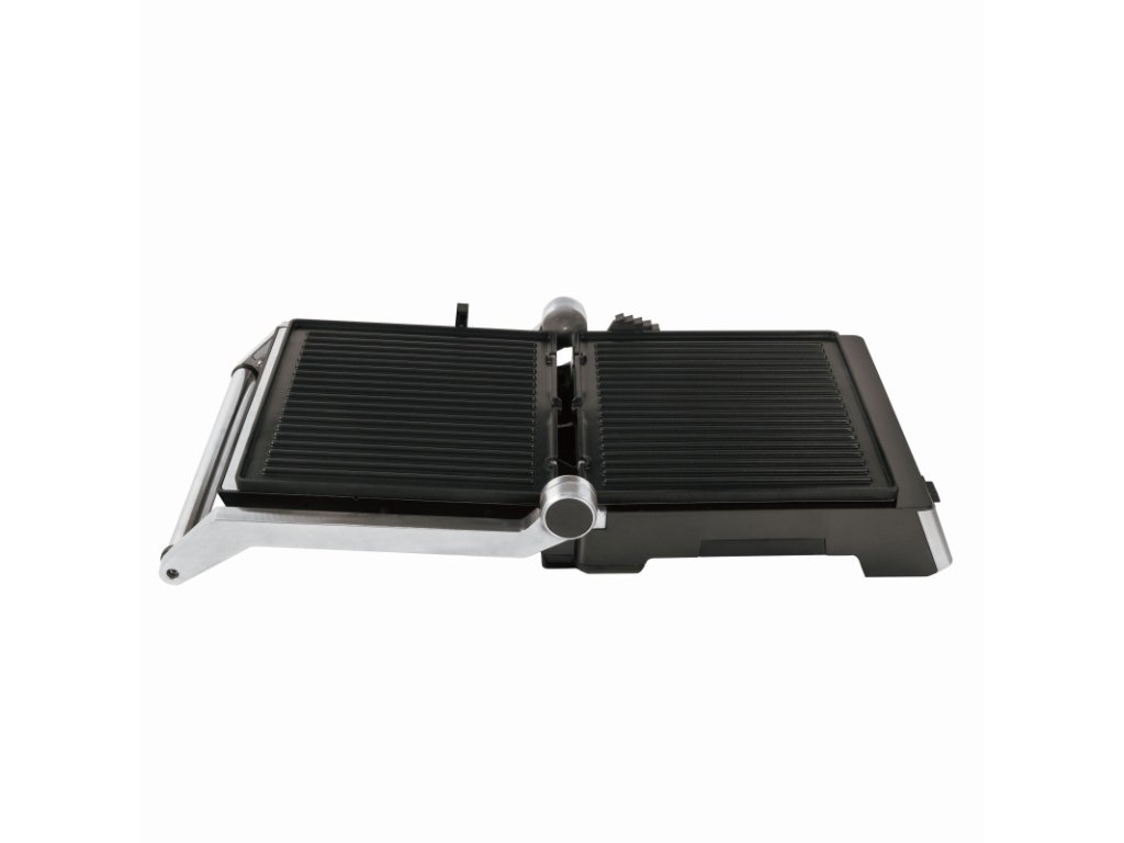- 2v1 systém: Můžete jej použít jako panini gril s úhlem 105° nebo jej zcela otevřít (180°) pro větší grilovací plochu.
