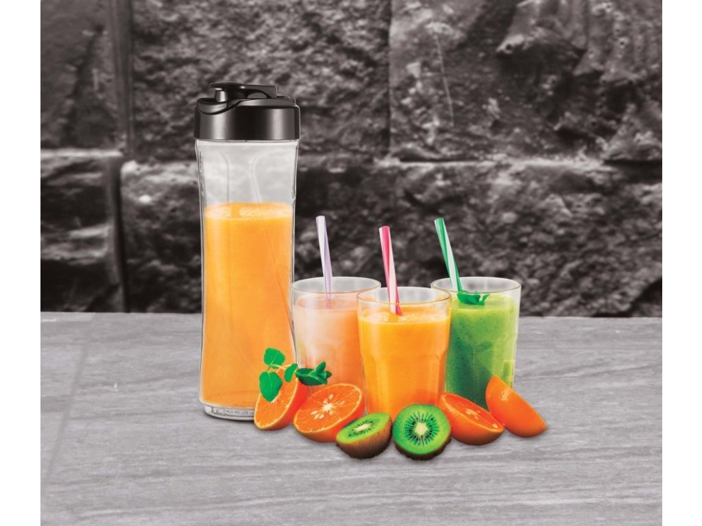 - mixovací láhev po skončení přípravy odejmete a rovnou můžete vzít kamkoliv sebou s hotovým smoothie