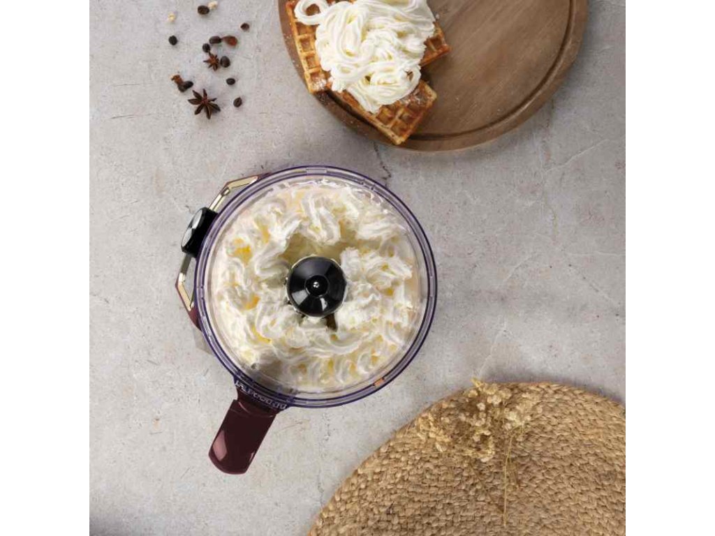 Tento univerzální kuchyňský robot 8 v 1 v elegantní matné bordó barvě je ideální volbou pro každého, kdo hledá multifunkčního pomocníka do kuchyně. Nabízí široké spektrum funkcí – od sekání a krájení až po mixování, emulgaci nebo odšťavňování citrusů. Díky praktickému příslušenství, intuitivnímu ovládání a kompaktnímu designu zvládne snadno každodenní kuchyňské úkoly.