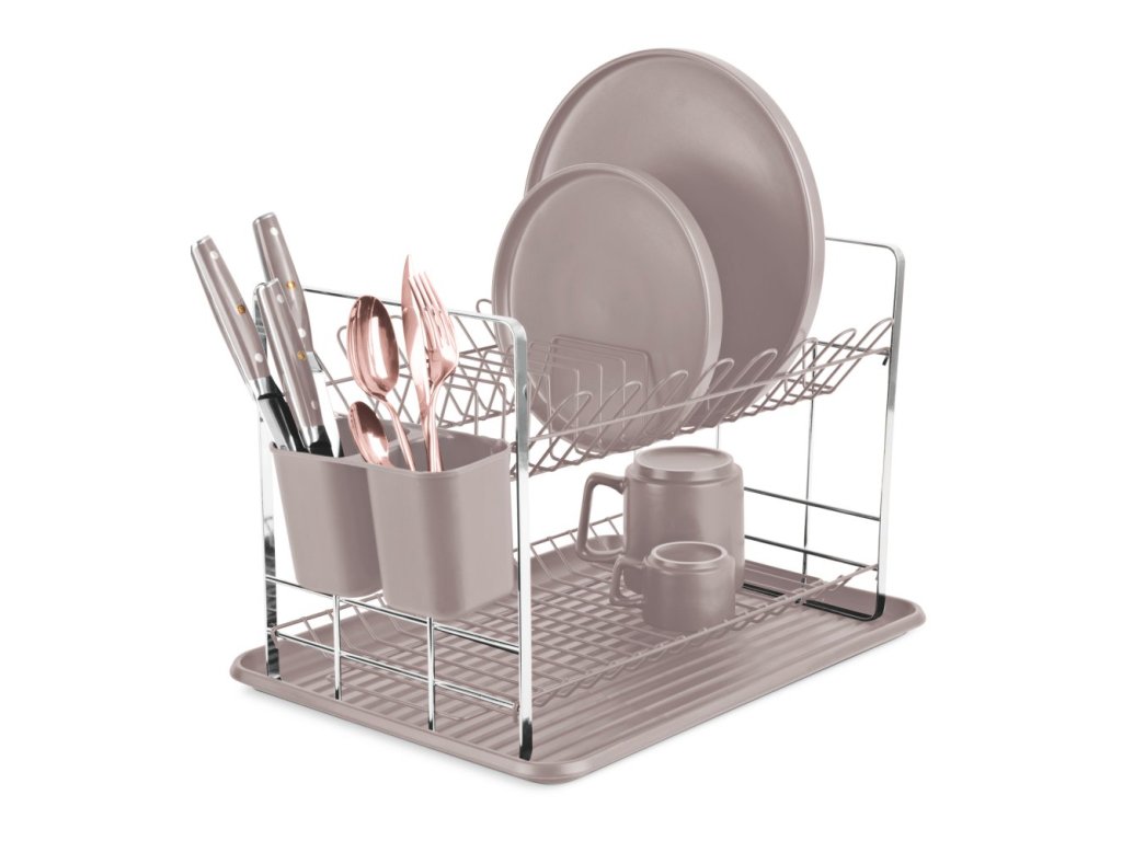 Dvoupatrový odkapávač na nádobí z kolekce Taupe od BerlingerHaus. Odnímatelný odkapávací tác. Dvě patra pro nádobí či skleničky a dva zásobníky na příbory a náčiní. Jednoduchá údržba a čištění. Designový kousek vyrobený v kombinaci plastu a kovu. Rozměry 48 x 32 x 29 cmDoplňkové parametry
