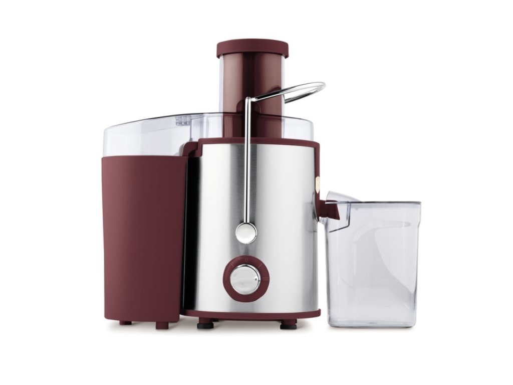 Technické parametry:• Materiál: tělo z nerezové oceli, filtr z nerezové oceli• Objem: 600ml kelímek na šťávu, 1300ml kelímek na dužinu• 220–240 V 50–60 Hz 500 W• Délka napájecího kabelu: 120 cm• Barva: bordóVlastnosti:• 2 rychlosti provozu• Ústí s ochranou proti odkapávání• Silné bezpečnostní rameno zámku• Ochrana proti přehřátí• Snadná demontáž a čištění• Průhledné víko• Protiskluzové nožičky• Elegantní designDoplňkové parametry