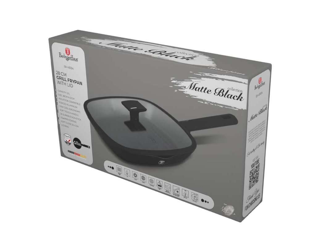 BERLINGERHAUS Pánev grilovací s poklicí 28 cm Matte Black Collection BH-8184