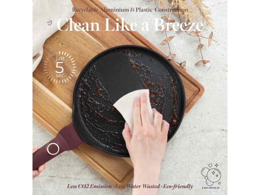 - díky nadstandartním nepřilnavým vlastnostem titanového povrchu je čištění pánve rychlé a nenáročné, stačí omýt teplou vodou a houbičkou