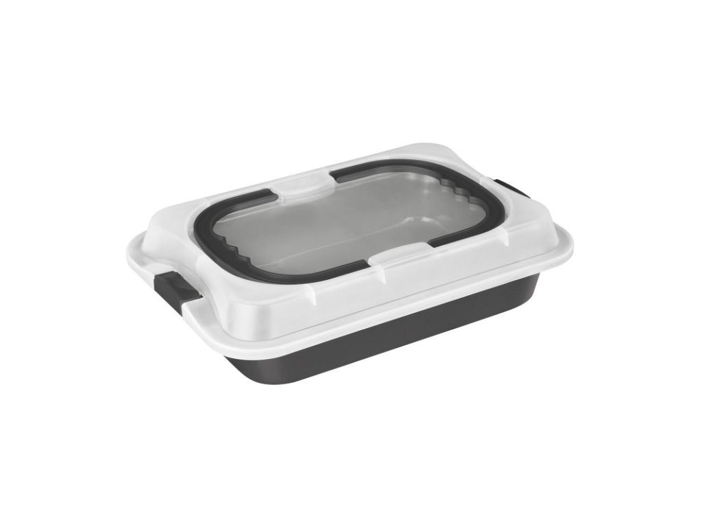 Dopřejte si pohodlné a efektivní pečení s přenosným plechem na pečení s víkem z kolekce Antracit Collection. Ideální pro každodenní použití i speciální kulinářské projekty – praktický, odolný a ekologicky šetrný.