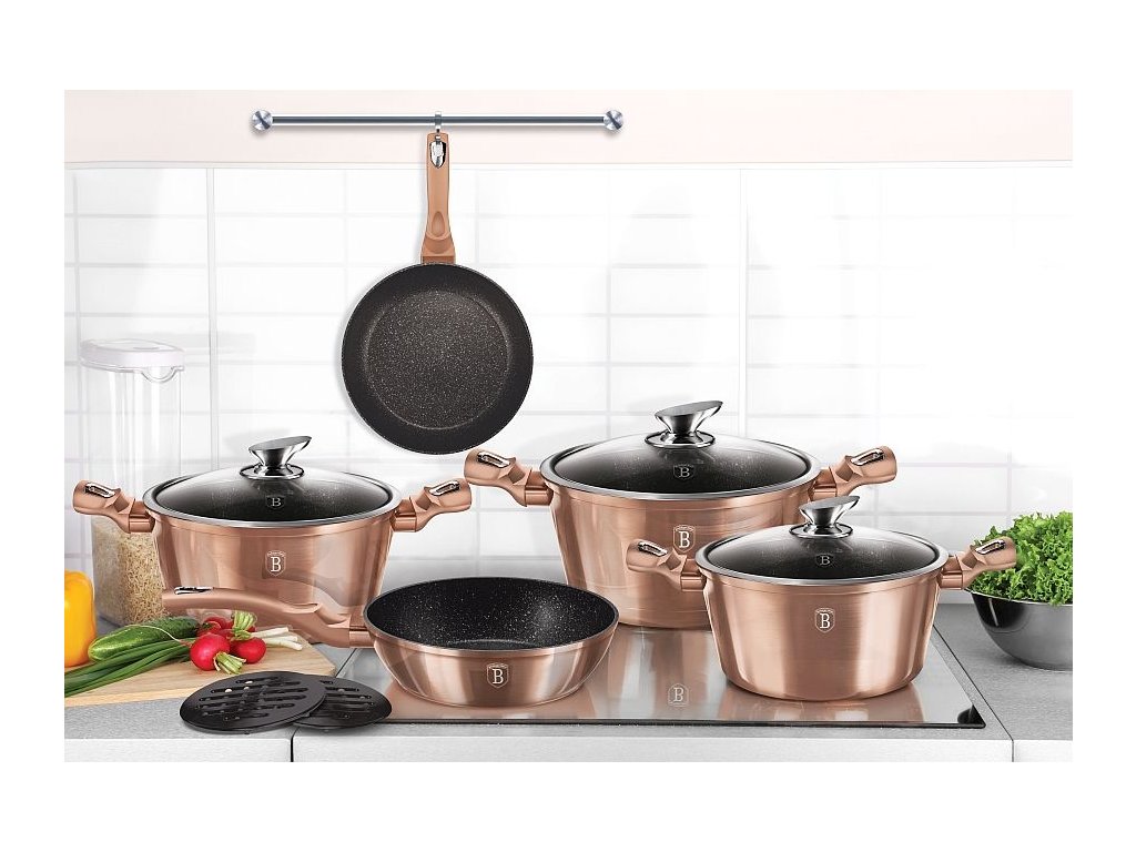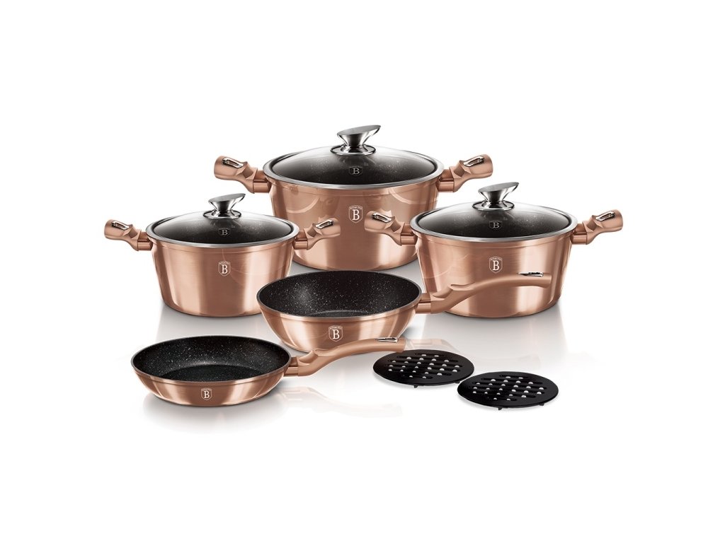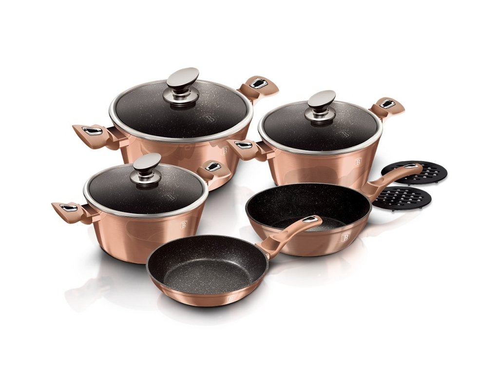 BERLINGERHAUS Sada nádobí s mramorovým povrchem 10 ks Rosegold Metallic Line BH-1220